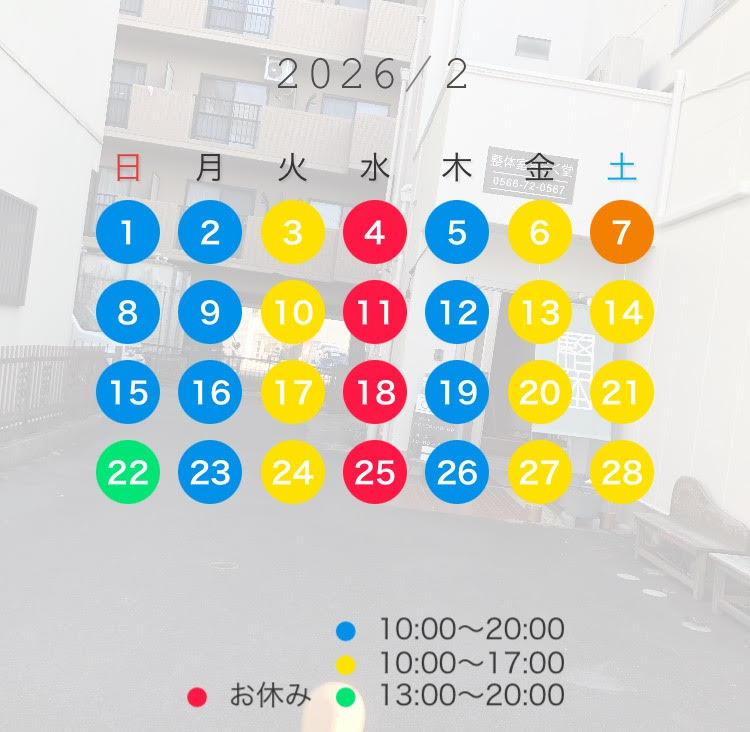 (当日の施術予約は17時までにお願いいたします)